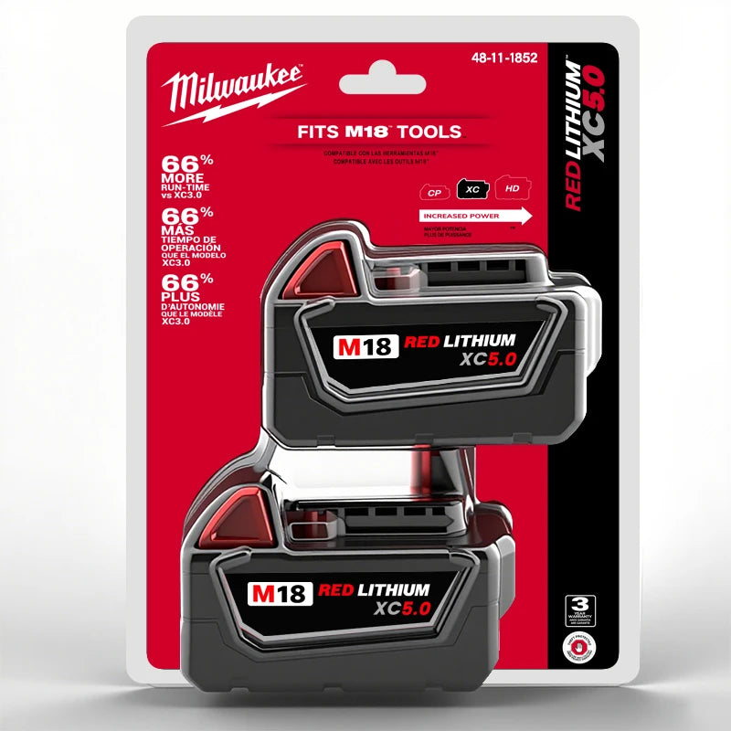 Milwaukee M18 18V 5.0Ah Lithium Battery- 2pk In Packaging