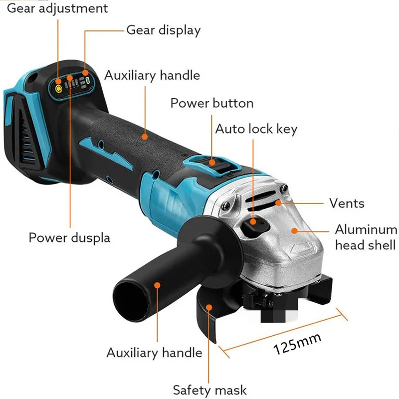 Makita Compatible 125mm Brushless Angle Grinder Cordless Li-ion Battery Powered for Cutting Polishing Grinding Compatible with Makita 18V tools