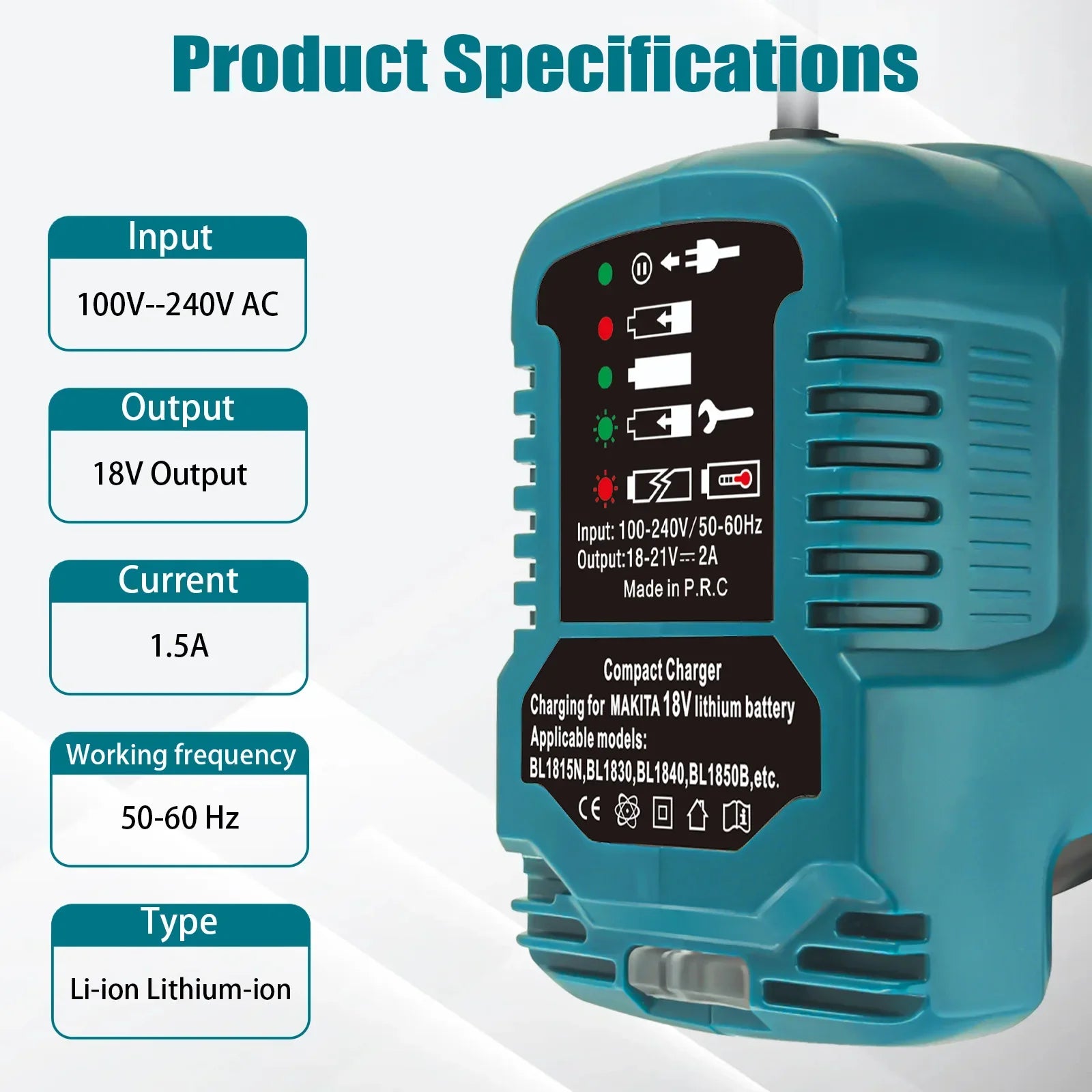 Makita Compatible 12V/24V 100-240V Li-ion Battery Mini Compact Car Charger for Makita 18V Lithium Ion Battery BL1860 BL1830 Replacement for DC18RC