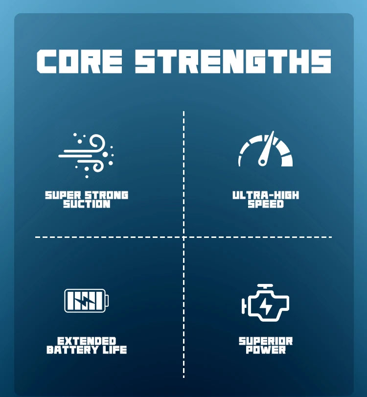 16000pa Suction Power: Serious pull for dust, dirt, and wet messes.