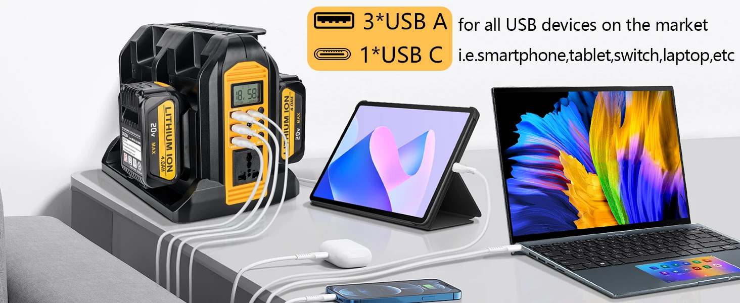 function 2:Power Supply Inverter For Dewalt 20V 60V Lithium Battery