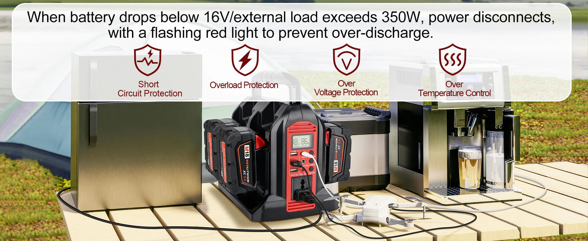 Power up your adventure, jobsite, or emergency kit with this rugged 350W inverter designed for Milwaukee M18 18V batteries. Whether you're camping off-grid, charging devices on the go, or keeping essentials running during outages, this inverter delivers clean, stable energy with pure sine wave output.