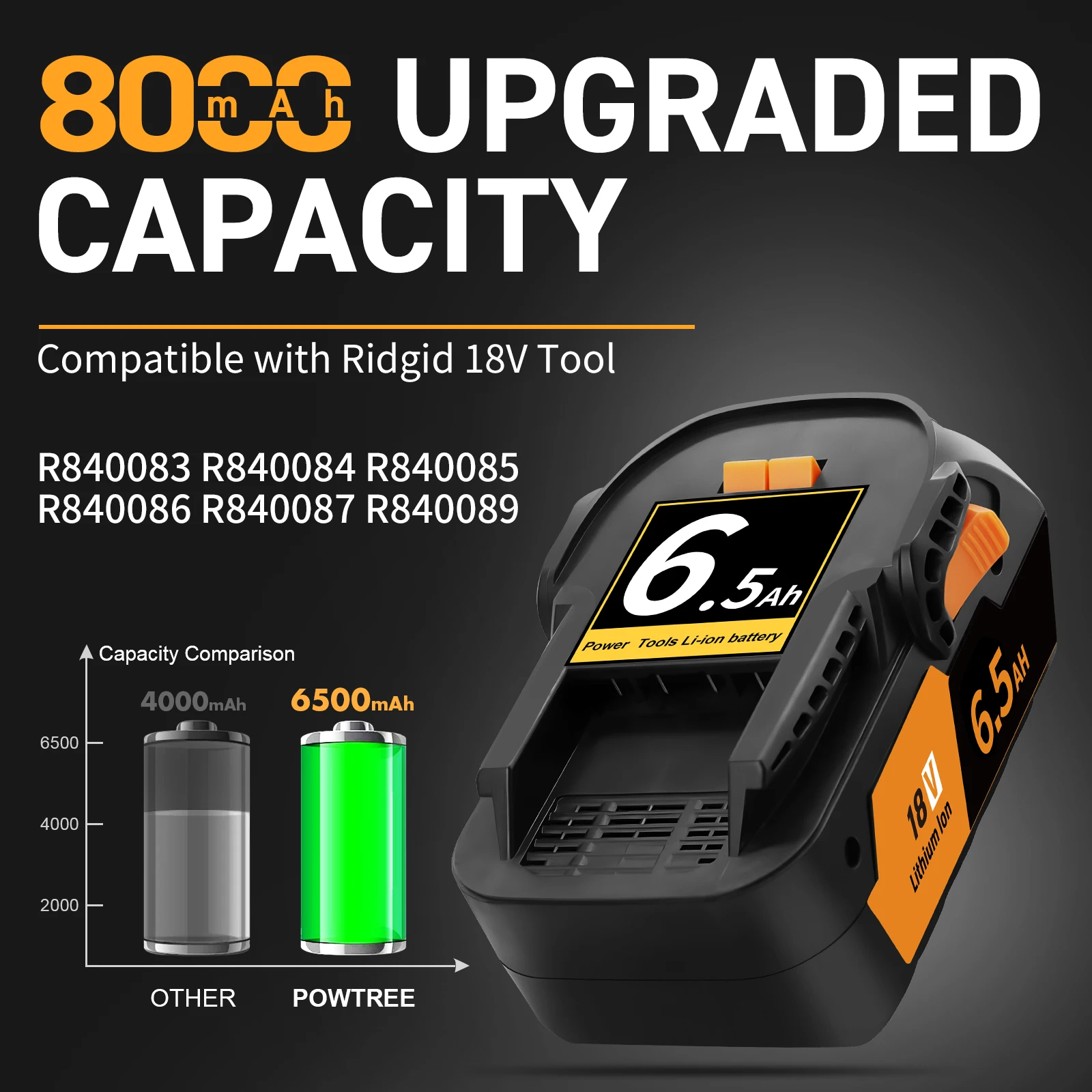 ⚡ High Capacity: 6.5Ah for extended runtime and fewer interruptions