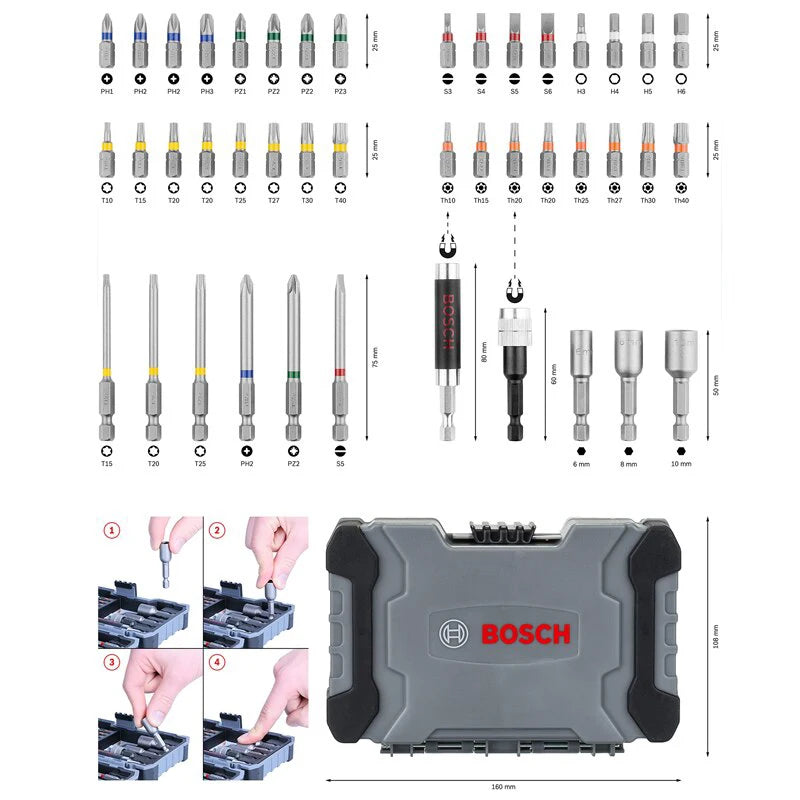 BOSCH 2607017702 Screwdriver Bit Set 43-pcs HSS High Hardness Multifunctional PH/PZ Bit Power Tool Attachments