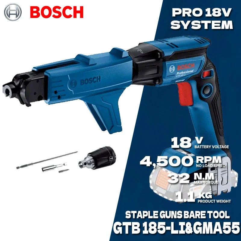 Bosch GTB 185-LI Nail Gun Cordless Drywall Screw Screwdriver Brushless Staple Guns With GMA55 18V Professionl Power Tool
