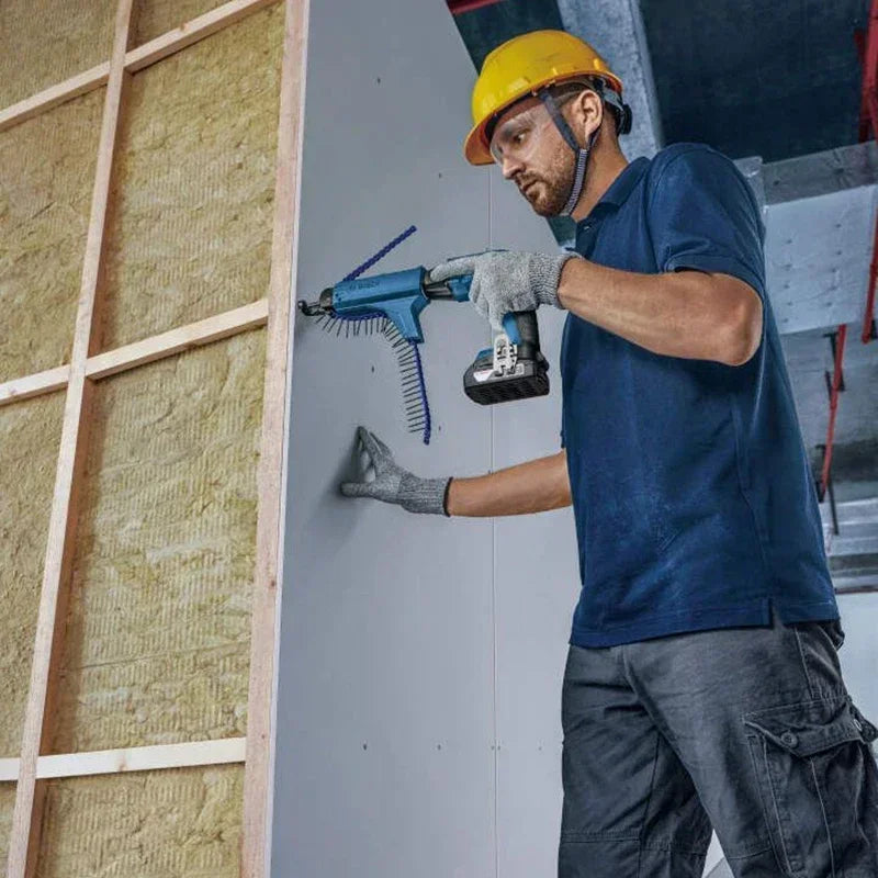 This screwdriver with 4,500 rpm power output is ideal for efficient drywall installation and accurately driving up to 4.2 mm diameter drywall screws into plasterboard with 0.5 mm light steel.