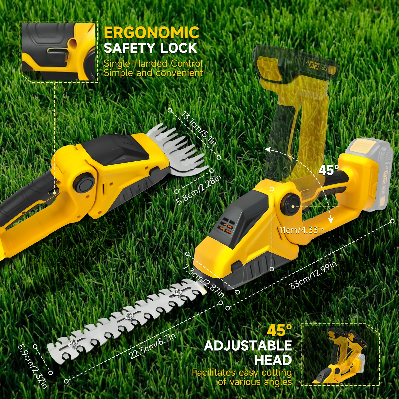 Cordless Hedge Trimmer & Grass Shears for DeWalt 20V Batteries