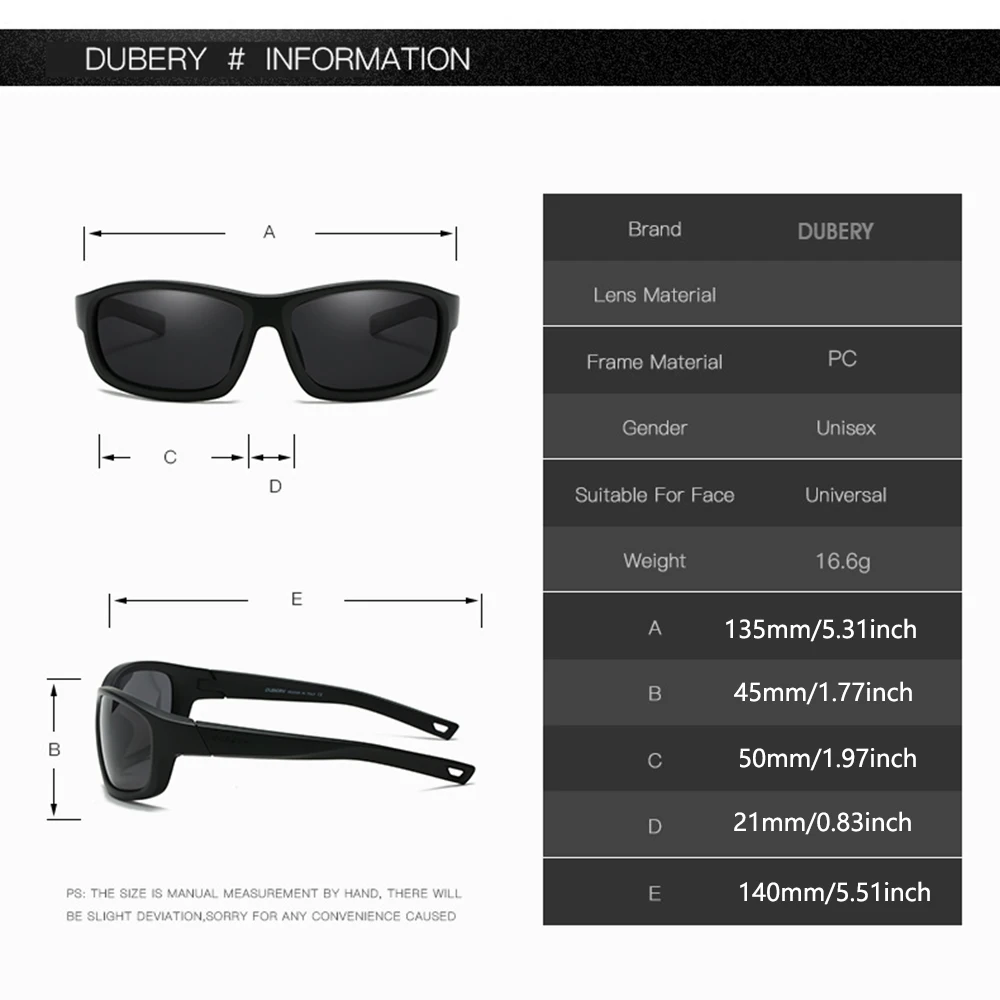 Whether you're chasing the horizon or just chasing errands, the DUBERY JV Full Rim Polarized Sunglasses are built to keep your vision sharp and your style sharper. Designed for both men and women, these shades combine bold aesthetics with performance-grade protection—perfect for outdoor sports, travel, and daily wear.