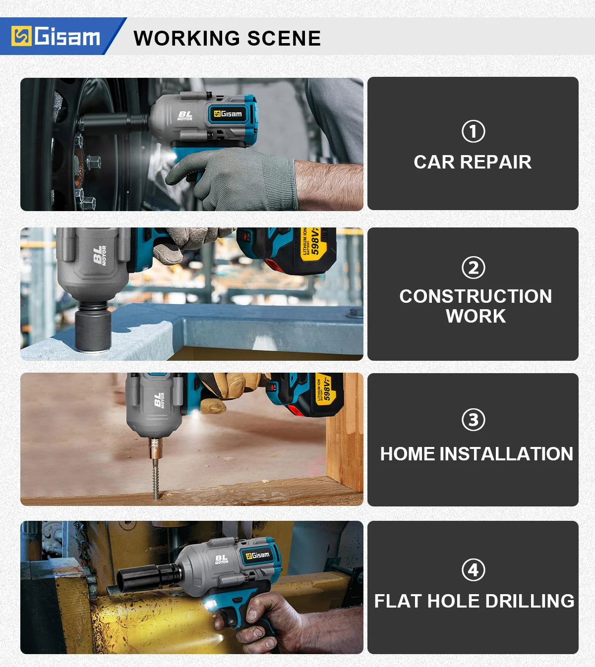 Gisam 2000N.M Torque Brushless Electric Impact Wrench 1/2 inch