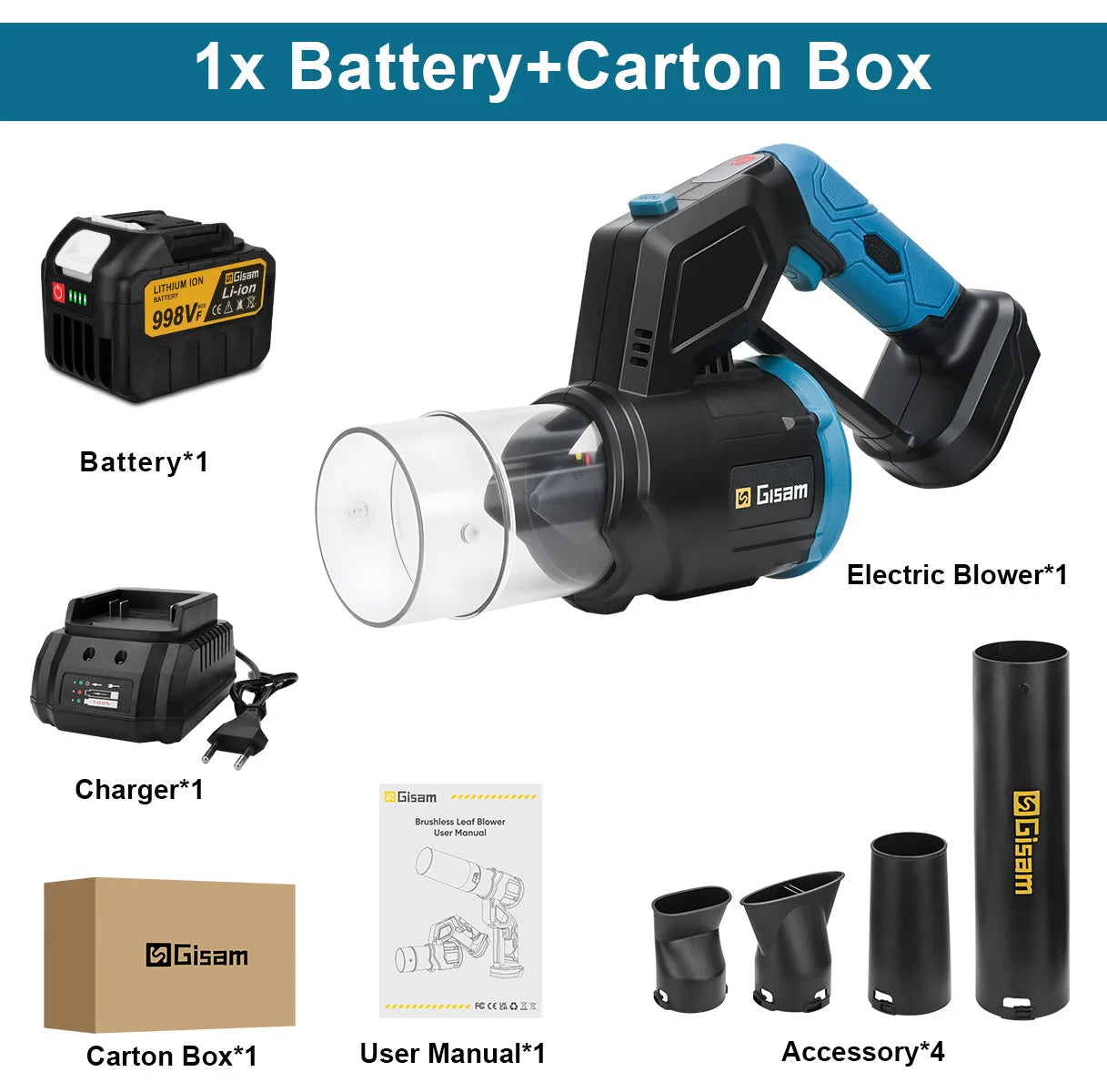 Makita Compatible 18V Gisam 35000RPM Brushless Electric Air Blower 2in1 Turbo Blower Fan Leaf Dust Snow Blowing Clean Tool For Makita 18V Battery Pin