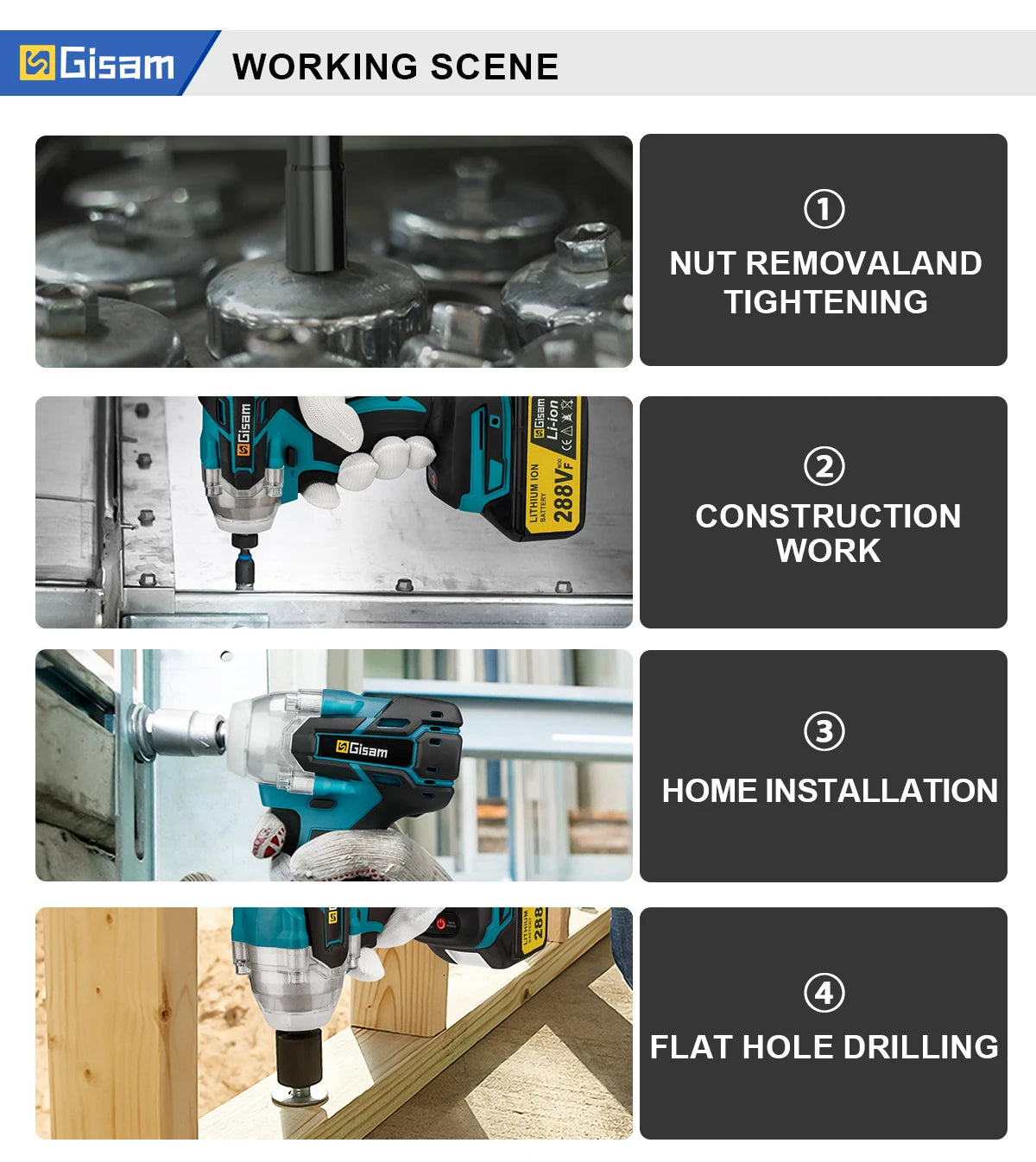 Gisam 520N.M Brushless Electric Impact Wrench