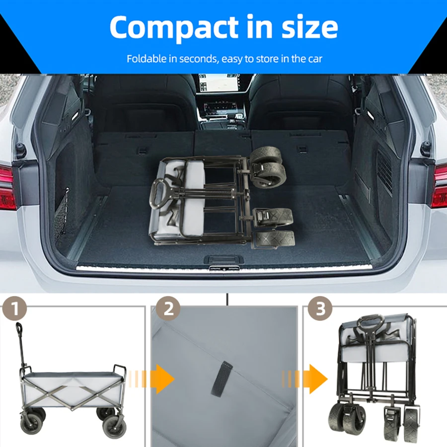 Trolley wagon JV Large Weight Capacity Heavy Duty Cart Collapsible Folding Beach Wagon with Big All-Terrain Wheels Outdoor Camping Equipment