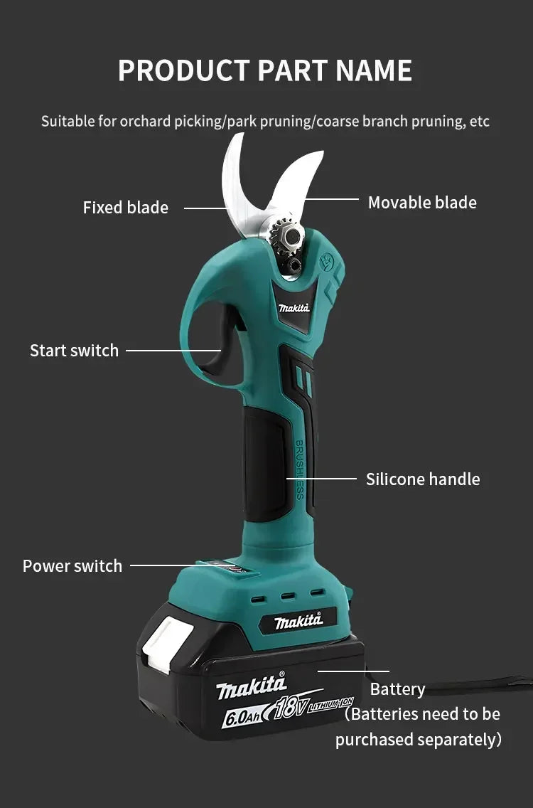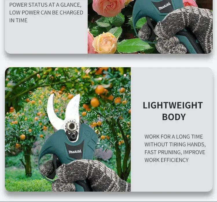 Whether you're trimming fruit trees, shaping hedges, or tackling thick stems with ease, these Makita-compatible electric pruning shears deliver cordless freedom and clean cuts in seconds. Designed for ergonomic comfort and high-volume pruning, they’re a must-have for anyone serious about garden efficiency.