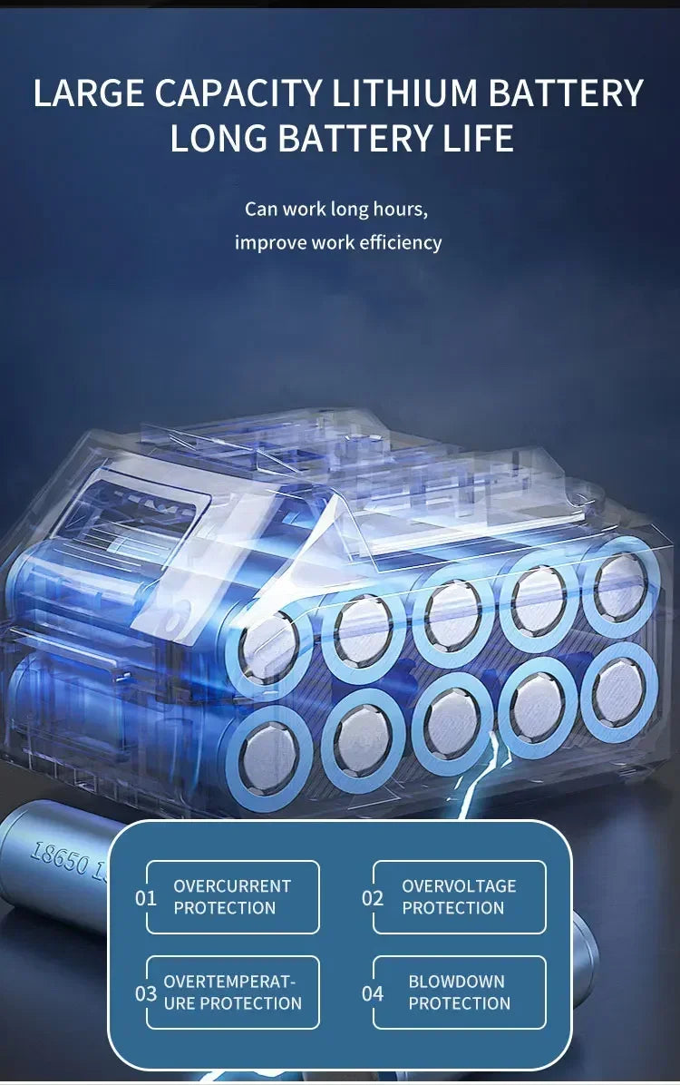 Makita battery compatible — use your existing setup, no extra chargers needed.
