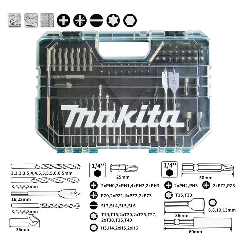 MAKITA Drill & Screwdriver Bit Set, 75pcs