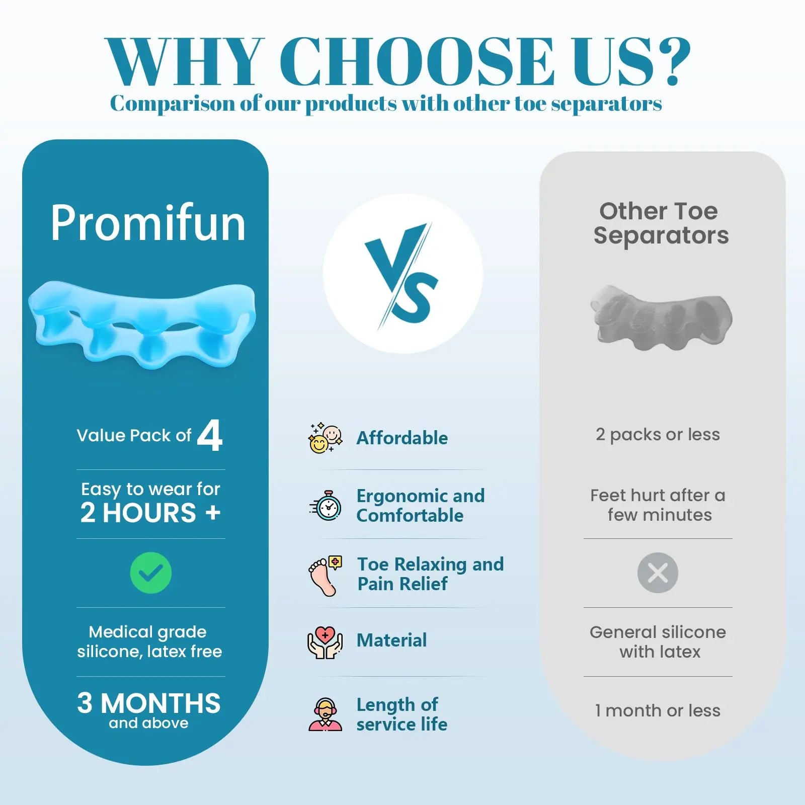 Ergonomic Design: Feet Separator adopts split toe design with smooth edges and fits the foot shape, making you feel comfortable when wearing it.