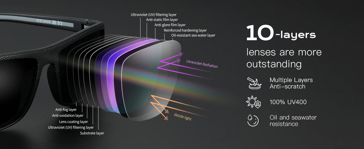 🕶️ Polarized Lens Technology – Reduces glare and enhances contrast for crisp, comfortable vision.